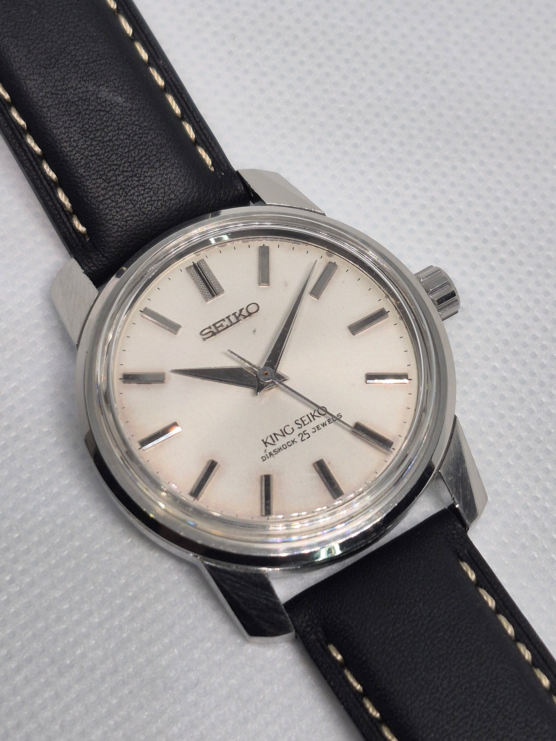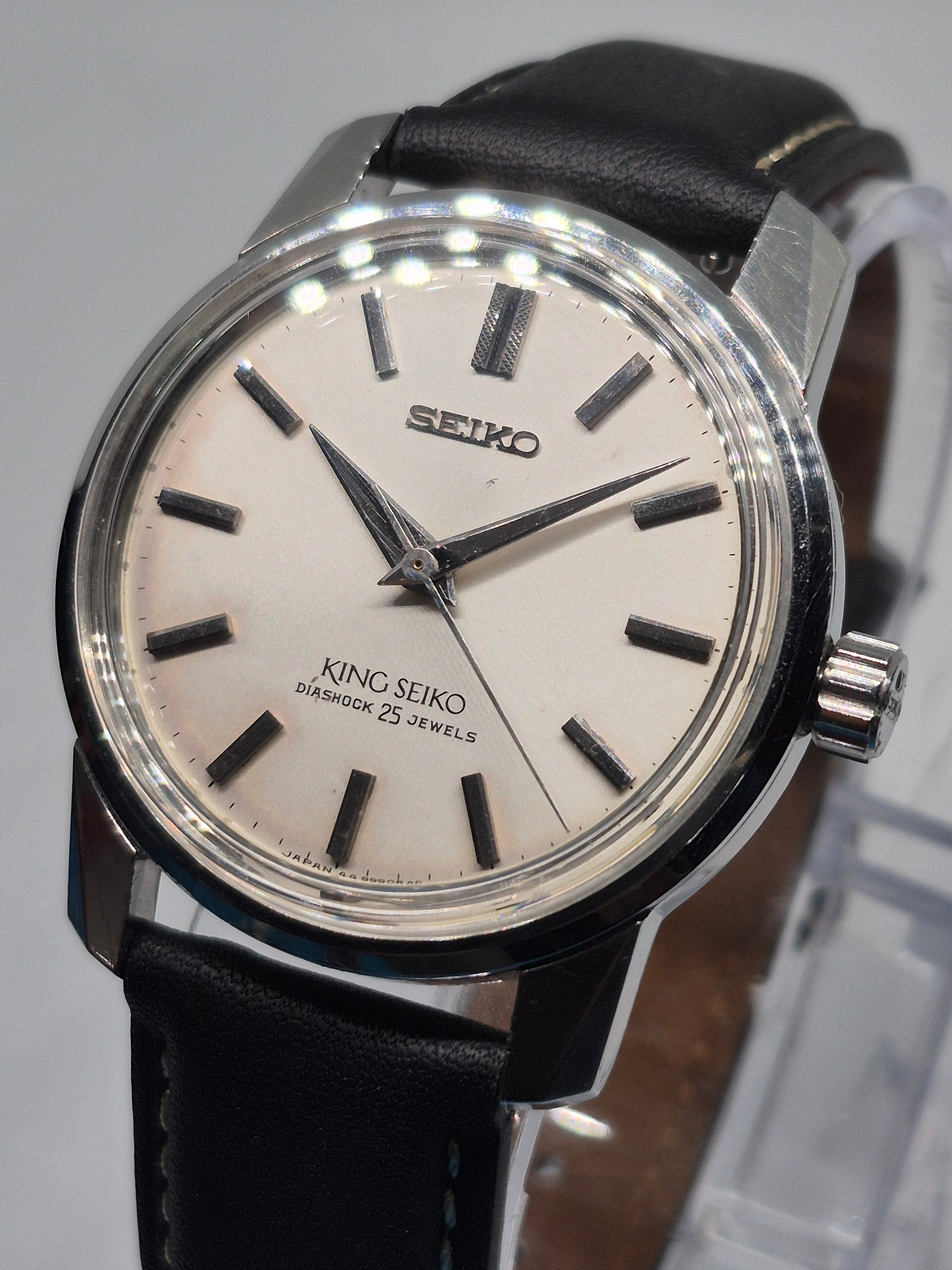 The 1967 King Seiko 44-9990 represents a pivotal moment in Seiko's horological evolution. This chronometer-grade timepiece emerged during Japan's golden age of watchmaking, featuring a robust 36mm case crafted from stainless steel with a refined brushed finish. Powered by the acclaimed 45-jewel caliber movement, the 44-9990 delivered precision that rivaled Swiss contemporaries, achieving chronometer certification with its exceptional accuracy standards. Distinguished by its clean dial design and applied indices, this model exemplified Seiko's commitment to legibility and durability. The watch housed a reliable automatic movement with a 48-hour power reserve, making it equally suited for daily wear or professional use. Its water-resistant construction and robust case design reflected the brand's engineering prowess during an era when Japanese watches were gaining international recognition. Today, the 1967 King Seiko 44-9990 stands as a collector's piece, valued for its historical significance and mechanical excellence. It captures a transformative period when Seiko challenged established watchmaking traditions and proved that precision and quality transcended geographical boundaries.