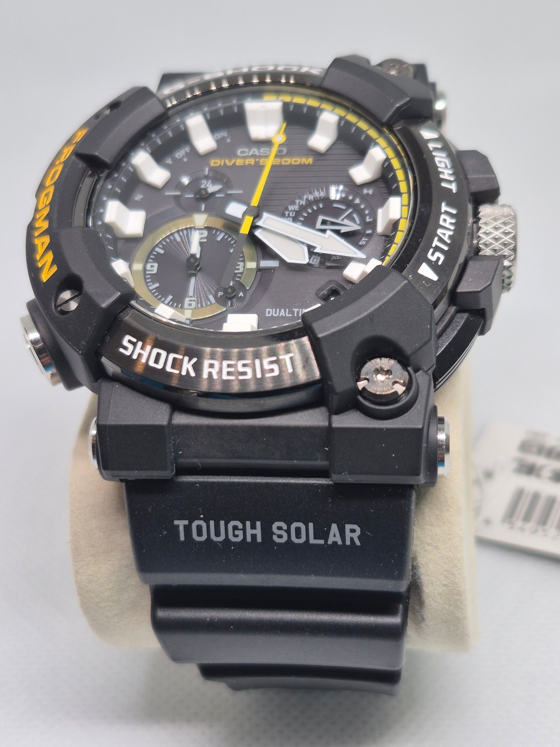 The Casio Frogman GWF-A1000-1AJF represents the pinnacle of digital dive watch engineering, combining robust functionality with iconic design heritage. This professional-grade timepiece features a triple-sensor system delivering compass, altitude, and temperature readings essential for serious divers and outdoor enthusiasts. Water-resistant to 200 meters, the watch withstands demanding aquatic environments while its shock-resistant construction ensures durability in extreme conditions. The digital display provides multiple time zones, a world timer, and comprehensive alarm functions, while the resin case and band offer lightweight comfort during extended wear. Built on Casio's legendary G-Shock platform, this Frogman delivers reliable performance whether you're exploring underwater depths or navigating remote terrain.